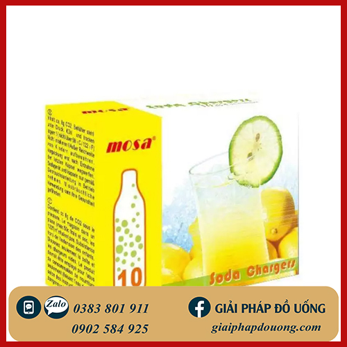 Mosa Soda Charger chất lượng cao từ nhà máy Mosa rất hiện đại của Đài Loan. VIên Gas Soda Mosa kín đảm bảo một hộp đầy đủ mỗi lần. VIên Gas Soda Mosa này cung cấp một nước soda có gas cho tất cả các đồ uống của bạn. VIên Gas Soda Mosa được đảm bảo để cung cấp cho bạn một sự sủi bọt mạnh mẽ mà không có dư vị. Mỗi hộp chứa 10 VIên Gas Soda Mosa.