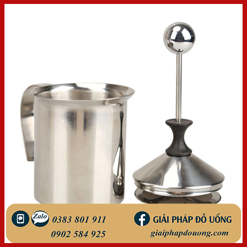 Dụng Cụ Tạo Bọt Sữa hay Ca Tạo Bọt Sữa có các chi tiết là ca inox, dụng cụ nhấn tao bọt cho sữa, là giải pháp cho các quán nước, cà phê nhỏ, ít chi phí.