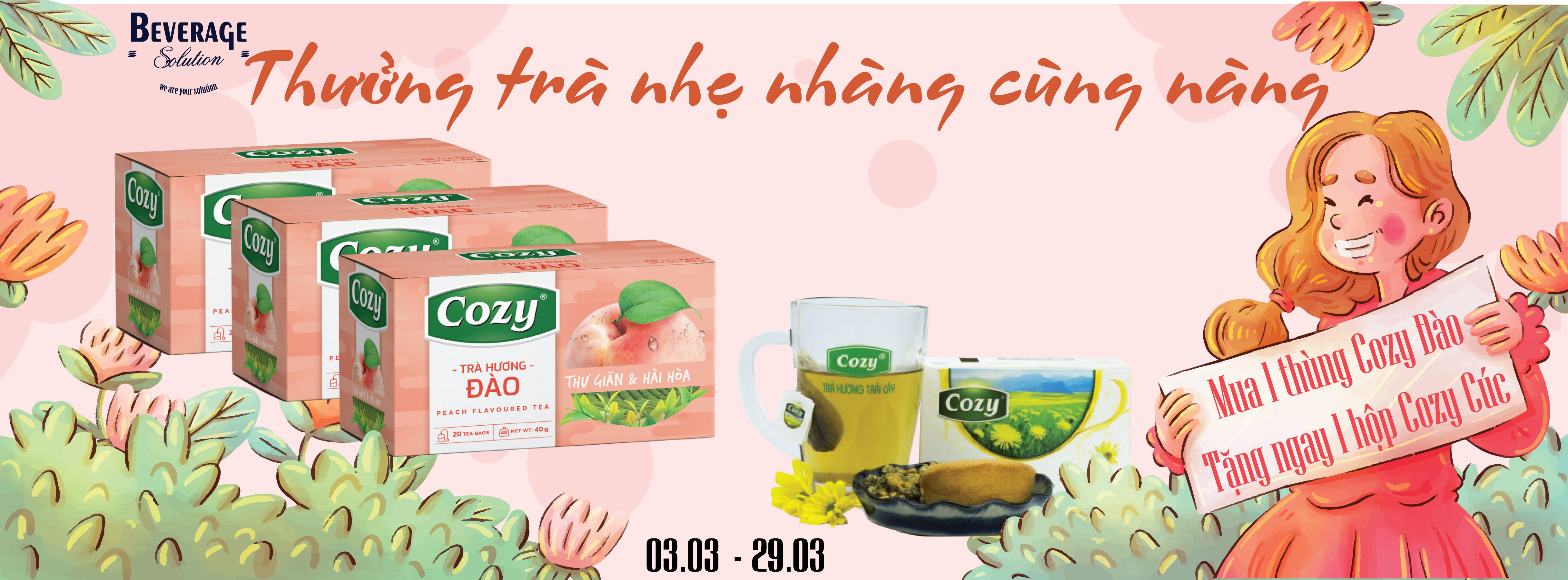 ✔ Tặng ngay 1h trà Cozy Cúc cho nàng khi mua 1 thùng trà Cozy Đào.