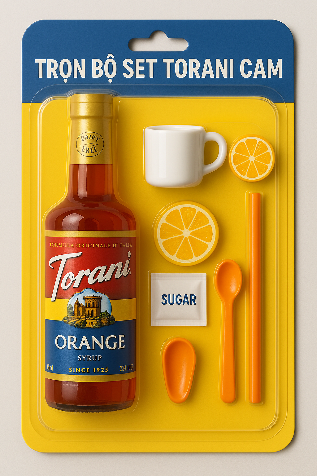 ✔ Syrup Torani Cam ngọt ngào,hay một chút chua nhẹ từ Phúc Bồn Tử Đỏ (Red Raspberry). Bạn chọn thử xem.