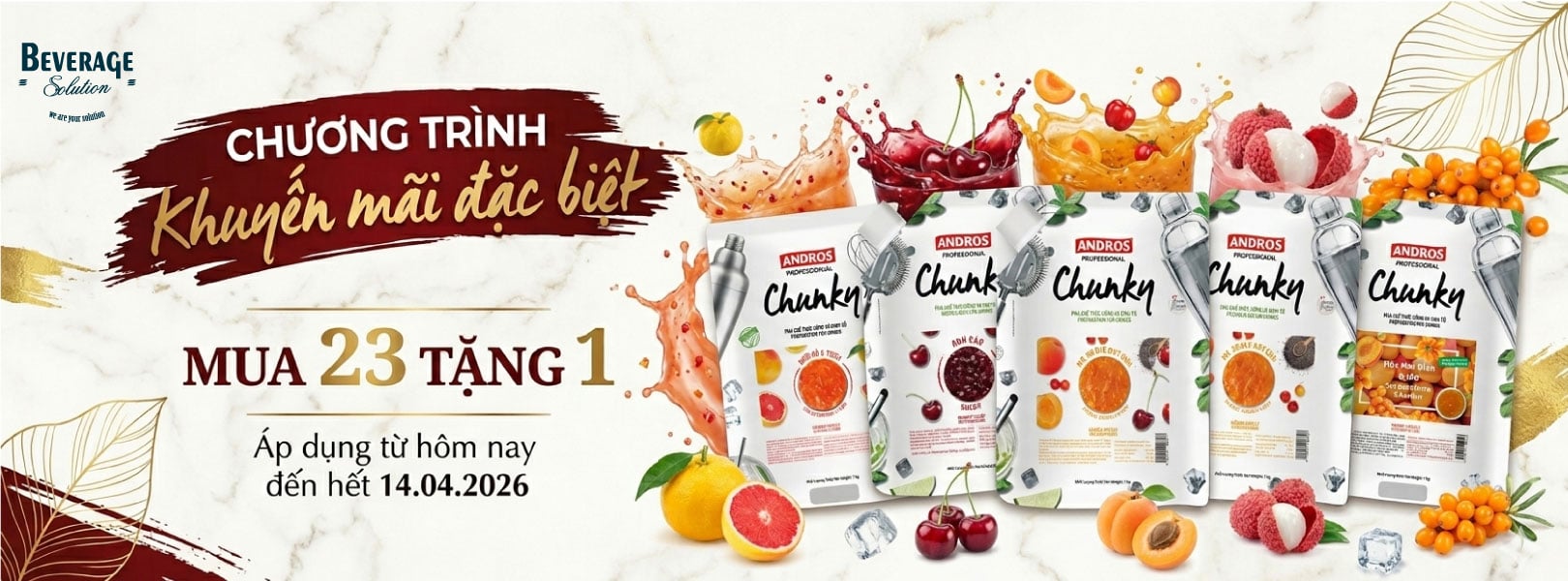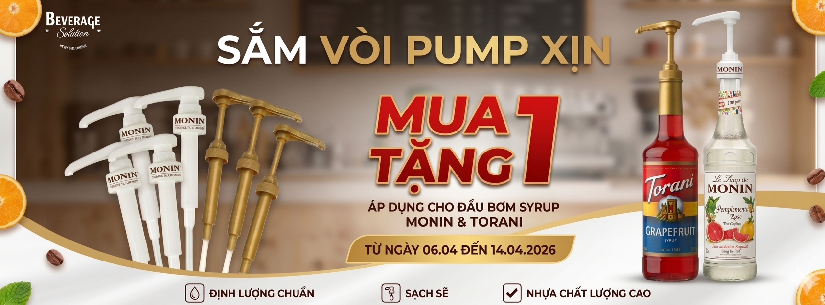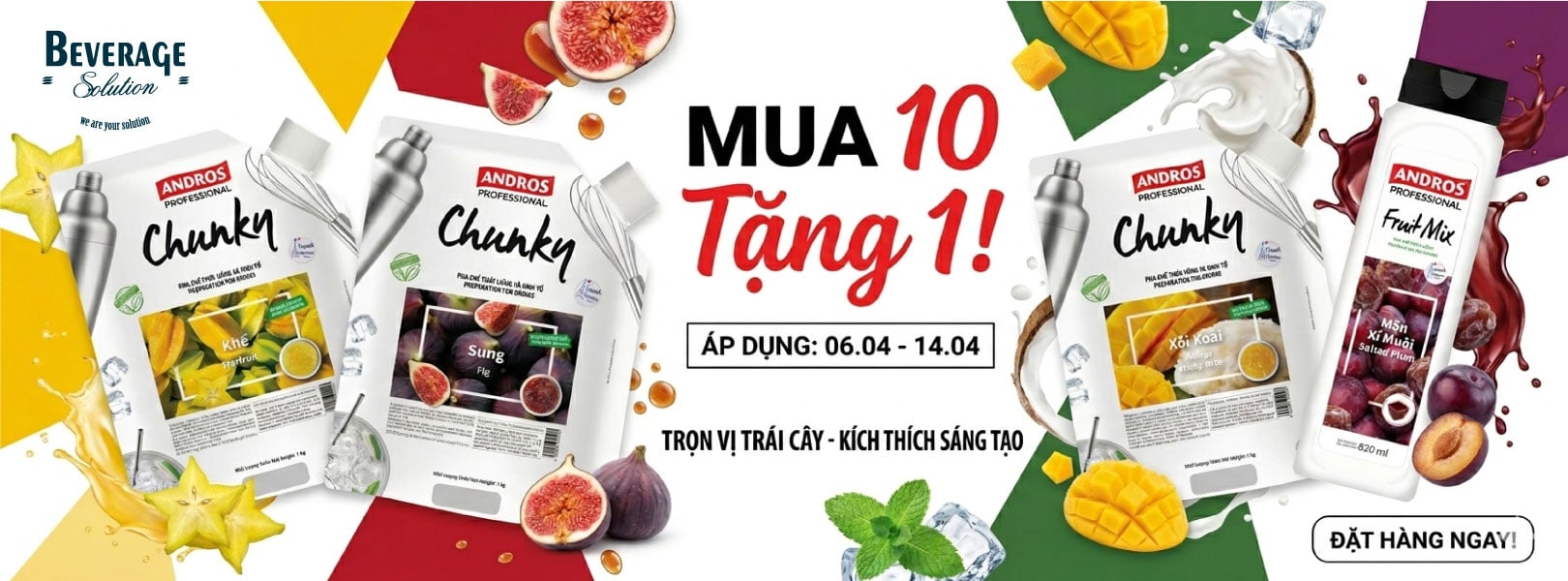 Tháng 4 gõ cửa với những tia nắng đầu hạ rực rỡ, cũng là lúc thị trường đồ uống bắt đầu "tăng nhiệt". Để đồng hành cùng các chủ quán và những tín đồ đam mê sáng tạo đồ uống, Giải Pháp Đồ Uống mang đến chương trình khuyến mãi lớn nhất trong tháng: "SẮM LIỀN TAY - NHẬN NGAY ƯU ĐÃI".
