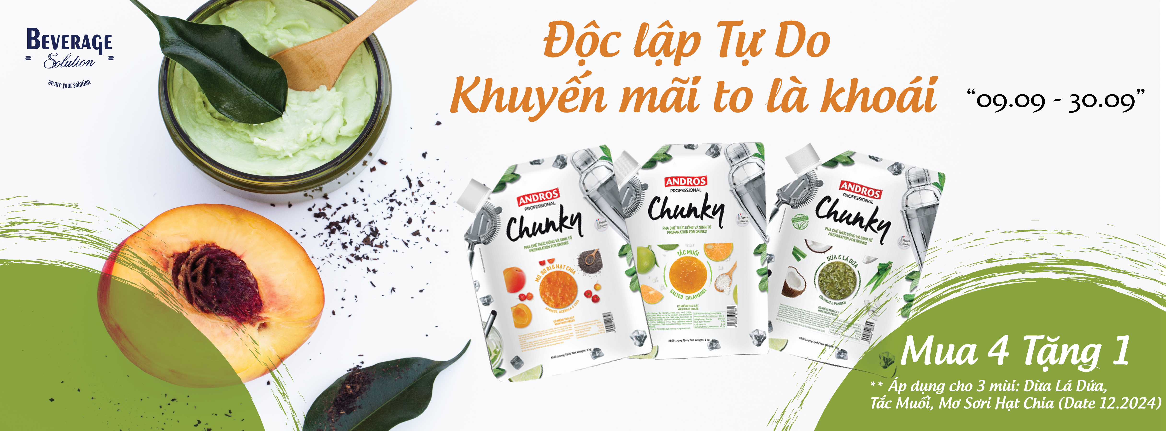 ✔ Độc lập Tự do, Khuyến mãi to ai mà không khoái. Mua 4 túi , tặng ngay 1 túi cùng loại, áp dụng đối với các sản phẩm Chunky Dừa lá dứa, Tắc muối, Mơ sơri hạt chia (date 12.2024)