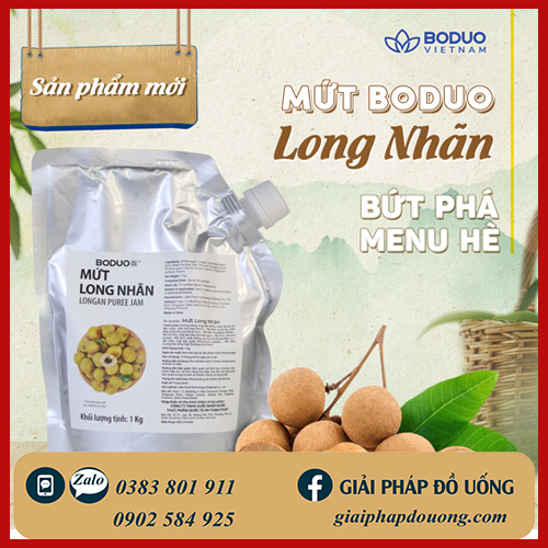 Mứt Boduo Long Nhãn 1kg là nguyên liệu pha chế giúp cho sản phẩm đồ uống của bạn thơm ngon và tròn vị.