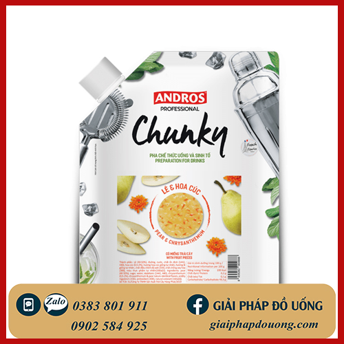 Mứt Lê & Hoa Cúc Chunky có độ sánh tốt, có phần lê và hoa cúc nhiều, là nguyên liệu pha chế và topping không thể thiếu cho các món thức uống đặc biệt. Ngoài ra Mứt Lê & Hoa Cúc Chunky còn có thể làm nguyên liệu trong món bánh điểm tâm ngọt dịu.