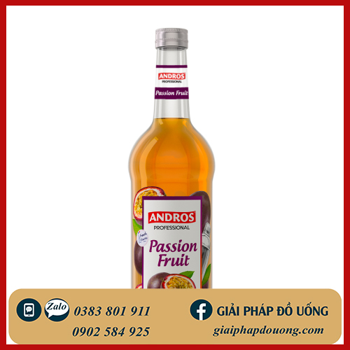 Syrup / Si rô Andros Professional hương vị Chanh Dây là một loại si rô được tạo ra bằng tất cả sự đam mê và yêu thích. syrup Andros Passion Fruit được chiết xuất từ chanh dây tươi kết hợp cùng đường mật mía, không chất tạo ngọt, không chất bảo quản, có hương thơm nhẹ nhàng, chút vị chua thanh.