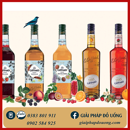 Syrup/ sirô Giffard với trên 40 hương vị từ truyền thống đến sự khác biệt: Đào, Dâu, Caramel, Hazelnut, Cherry, Rose, Mojito, Táo Xanh, Vanilla, Passion Fruit, Bubble Gum, ..mang đến sự sáng tạo không giới hạn trong giới pha chế.