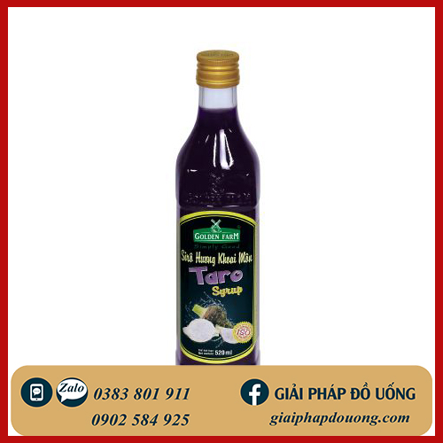 Siro Golden Farm Taro lấy cảm hứng từ củ khoai môn có màu sắc đẹp. Với vị bột béo, và hương thơm nhẹ nhàng, Siro Golden Farm Khoai Môn thích hợp tăng hương vị cho các món trà sữa, đá xay,...