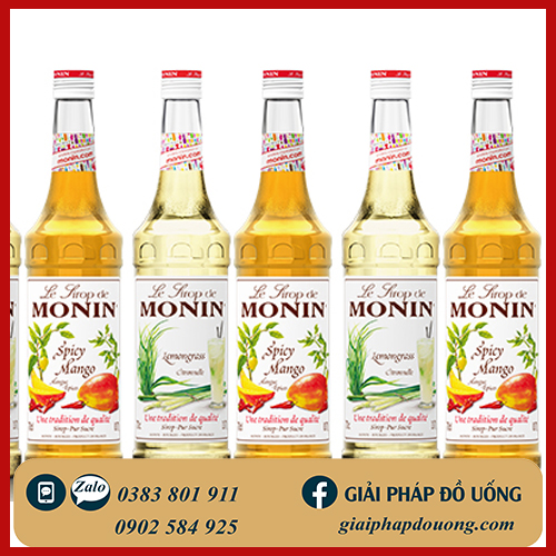 Syrup/sirô MONIN có hơn 60 hương vị đặc trưng: Matcha Green Tea, Green Mint, Dâu, Phúc Bồn Tử, Mojito Mint, Fosted Mint, Chocolate, Cookies, Dưa leo, Cherry, Đào, Vải, .