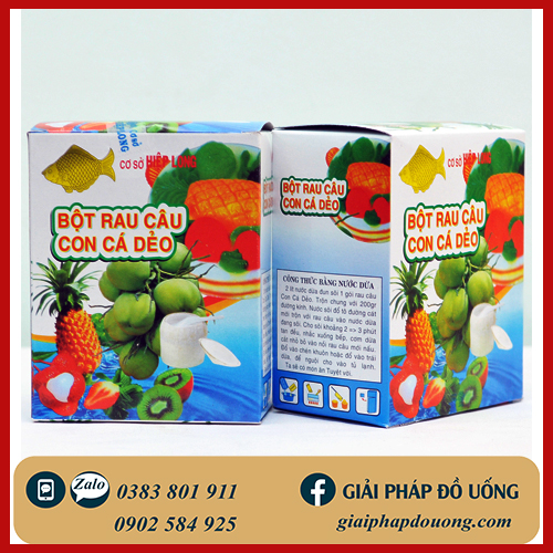 Rau Câu Con Cá Dẻo được dùng làm nguyên liệu pha chế cho các món thạch phô mai, thạch củ năng,rau câu dừa,... Rau Câu Con Cá Dẻo được đóng thành từng túi nhỏ dễ sử dụng, tiện lợi.