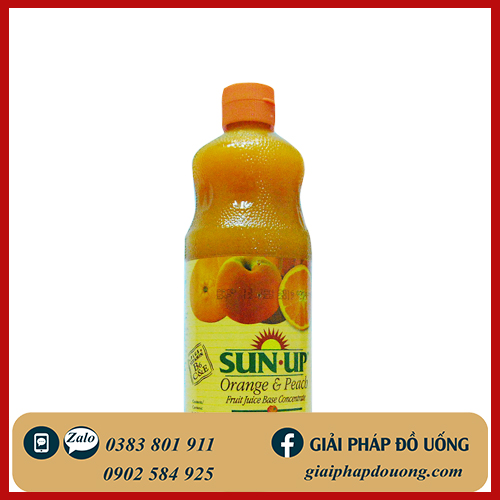 Nước Ép Trái Cây Cô Đặc Sunup Cam Đào với thành phần nước ép cam và nước ép đào, cam đào cô đặc, đường mía, giữ được hương vị và màu sắc đặc trưng của từng loại trái cây.
