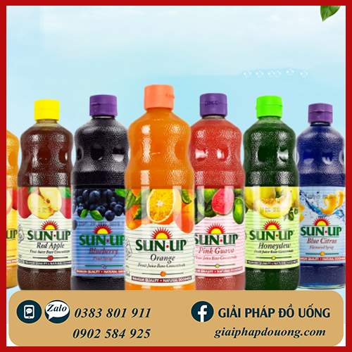 Nước Ép Trái Cây Cô Đặc Sunup có nhiều hương vị khác nhau, dễ dàng kết hợp và tạo món: Orange, Peach, Peach&Orange, Kiwi, Blackcurrant, Green Mint, Green Tea, Strawberry, Pink Guava, Mango, Pineapple, ...