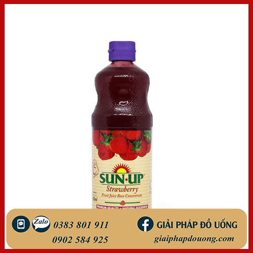 Nước Ép Trái Cây Cô Đặc Sunup Dâu với thành phần nước ép thơm, thơm đào cô đặc, đường mía, giữ được hương vị và màu sắc đặc trưng của từng loại trái cây.