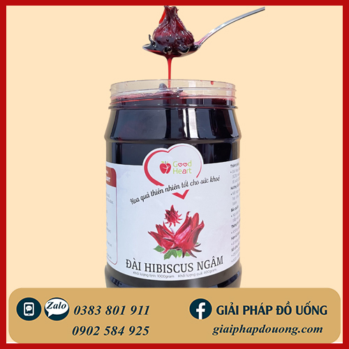 Hoa Hibiscus Ngâm có thành phần là đài hoa hibiscus tươi cùng siro đường mía, tạo nên vị ngọt ngào cùng hương thơm đặc trưng của hoa Hibiscus.