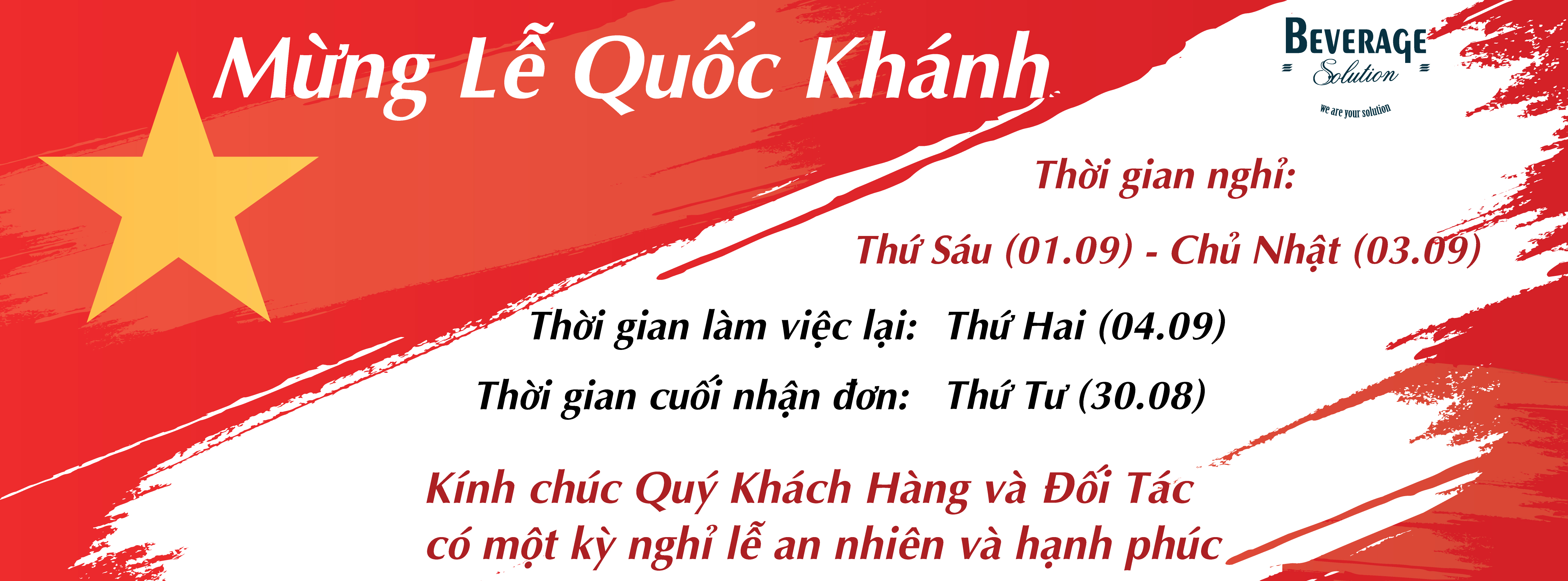 GIẢI PHÁP ĐỒ UỐNG THÔNG BÁO LỊCH NGHỈ LỄ QUỐC KHÁNH 2023