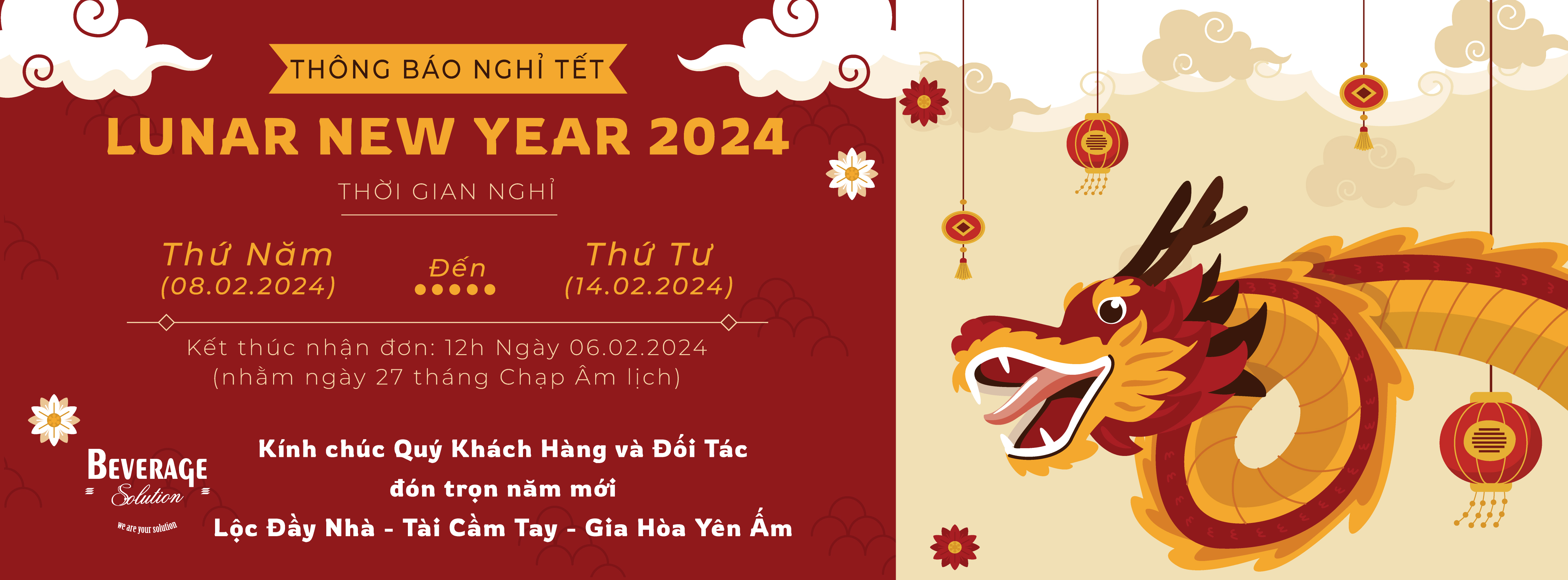 GIẢI PHÁP ĐỒ UỐNG THÔNG BÁO LỊCH NGHỈ TẾT NGUYÊN ĐÁN 2024